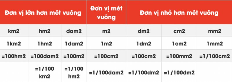 Cách quy đổi những đơn vị vuông phổ biến sang m2, dm2, cm2, mm2: