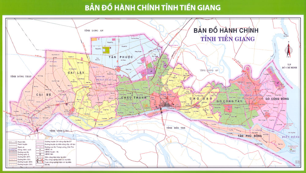 Bản đồ hành chính và giao thông tại tỉnh Tiền Giang