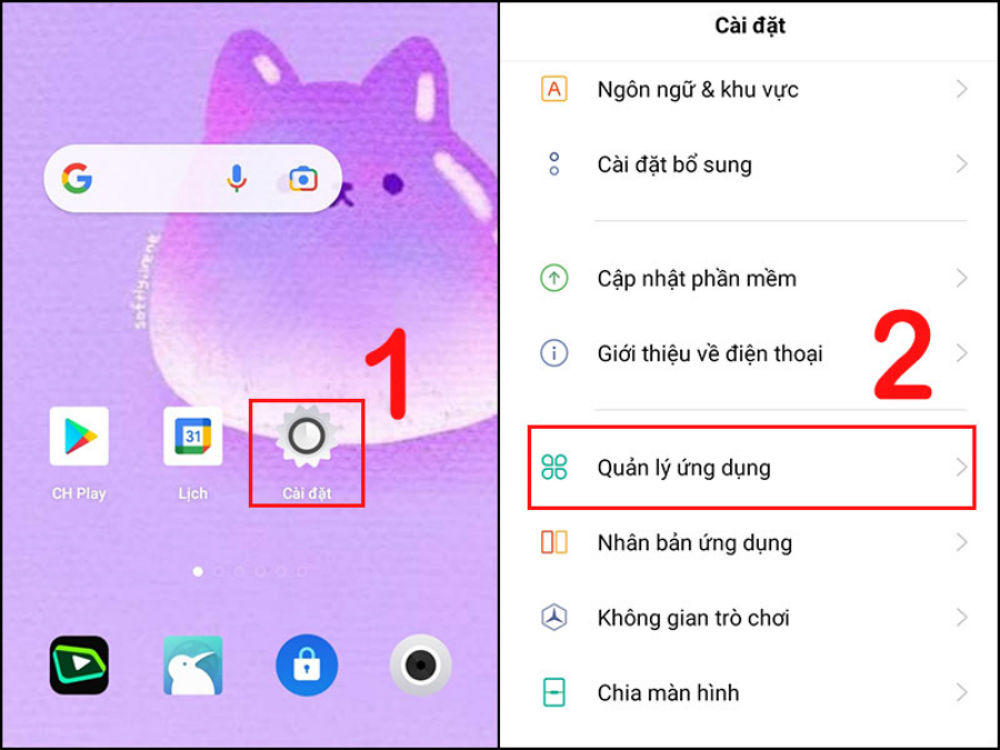 Bước 1: Đầu tiên, bạn vào Cài đặt -> Ấn chọn Quản lý ứng dụng.