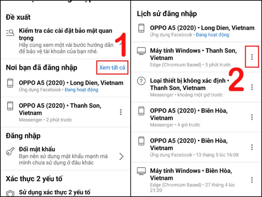 Bước 3: Tiếp tục, tại mục Nơi bạn đã đăng nhập, bấm vào Xem tất cả -> Nhấn tìm thiết bị muốn đăng xuất, chọn vào dấu 3 chấm.
