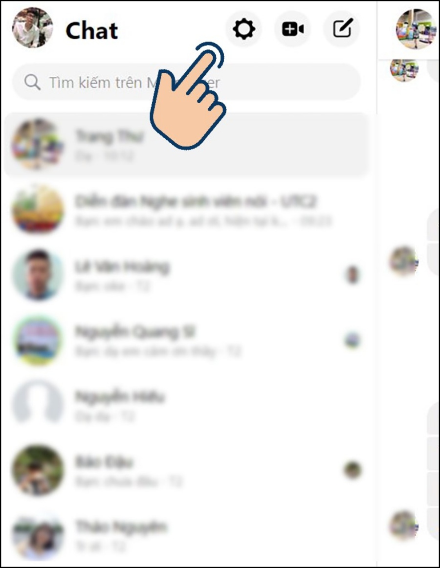 Bước 1: Trước hết tại màn hình Messenger web -> Ấn chọn icon răng cưa.