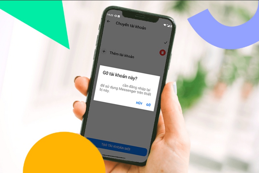 - Trả lời: Để có thể gỡ tài khoản Messenger, đầu tiên bạn vào trong Chat -> Bấm vào ảnh đại diện ở góc -> Nhấn chọn Chuyển đổi Tài khoản -> Tiến hành vuốt sang trái trên tài khoản bạn muốn gỡ -> Bấm vào -> Cuối cùng, nhấn Gỡ là hoàn tất.