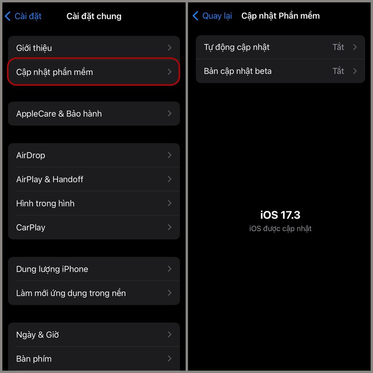 Bước 2: Chọn Cập nhật phần mềm > Hãy chọn Cài đặt để tiến hành tải phiên bản mới nhất.