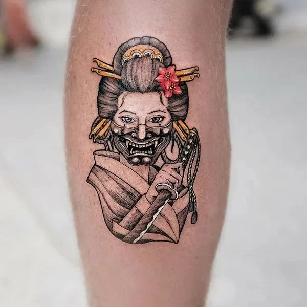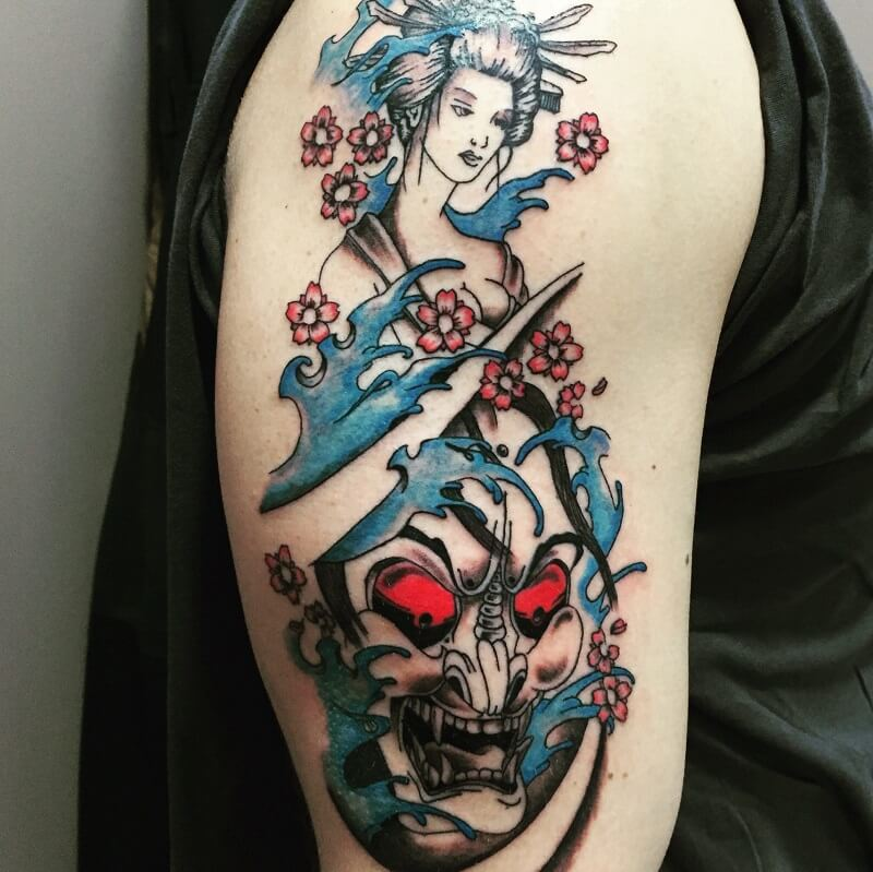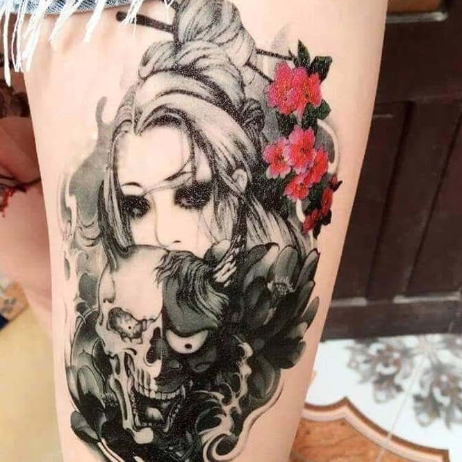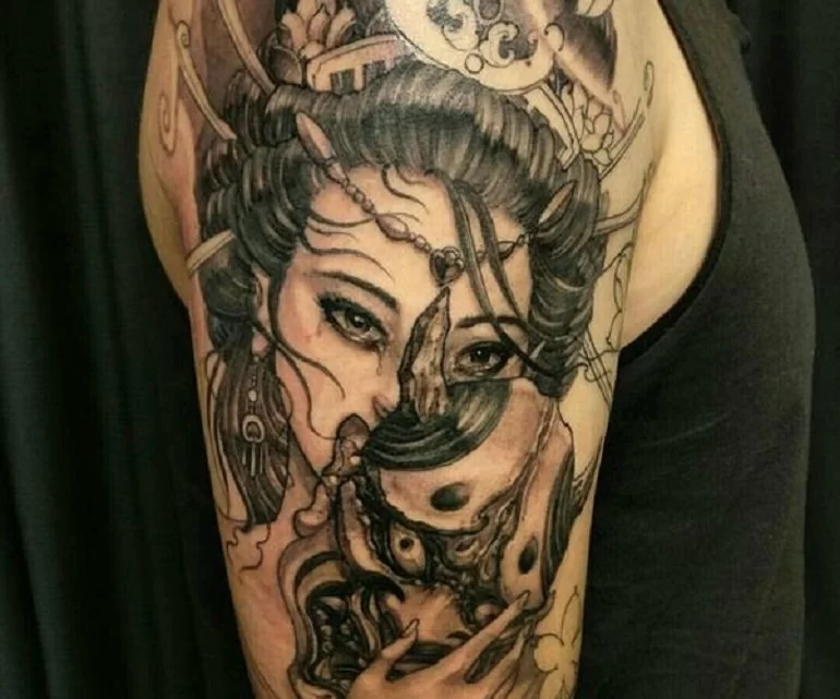 Bạn cũng có thể lựa chọn hình xăm cô gái mặt quỷ trên cánh tay hay ở trước ngực. Hình xăm này biểu trưng cho sự ấm áp, chung thủy và luôn vững vàng trước sóng gió cuộc đời.