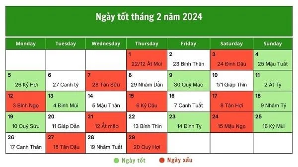 Theo lịch vạn niên 2024, thì Tết Nguyên Đán 2024 rơi vào các ngày sau: