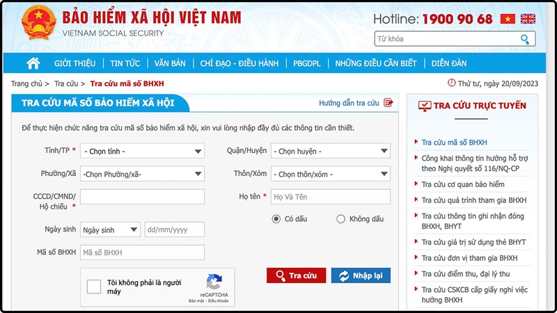 Nếu không biết mã số BHXH, bạn có thể tra cứu như sau: