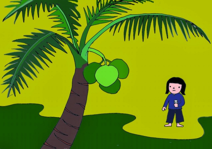 Cô giáo hỏi: Ai đứng canh trời đất? Dừa như thế nào? Trả lời: “Đứng canh trời đất bao la. Mà dừa đủng đỉnh như là đứng chơi”.