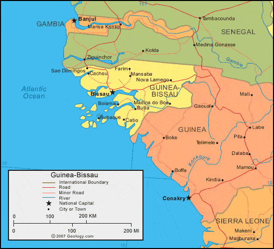 Vị trí địa lý: Nằm trên bờ biển Tây Phi, giáp Xê-nê-gan, Ghi-nê và Đại Tây Dương. Tọa độ: 12000 vĩ bắc, 15000 kinh tây.