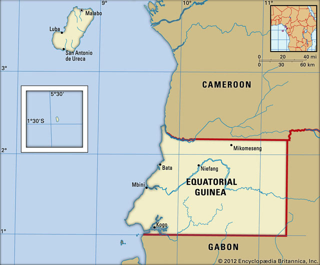 Lịch sử: Trong các thế kỷ XV - XVIII, đảo Bi-o-ko của Ghi-nê xích đạo bị Bồ Đào Nha chiếm. Đến năm 1778, Bồ Đào Nha trao cho Tây Ban Nha để đổi lấy một vùng đất ở Nam Mỹ. Năm 1959, Tây Ban Nha buộc phải xoá bỏ về mặt hình thức quy chế thực dân ở Ghi-nê và coi Ghi-nê là một "tỉnh hải ngoại" của mình. Năm 1964, Ghi-nê được quyền tự trị. Ngày 12/10/1968, Ghi-nê tuyên bố độc lập. Tháng 4-1969, Tây Ban Nha rút hết quân đội khỏi vùng đất này, Ghi-nê chính thức độc lập với tên gọi Cộng hòa Ghi-nê Xích đạo.