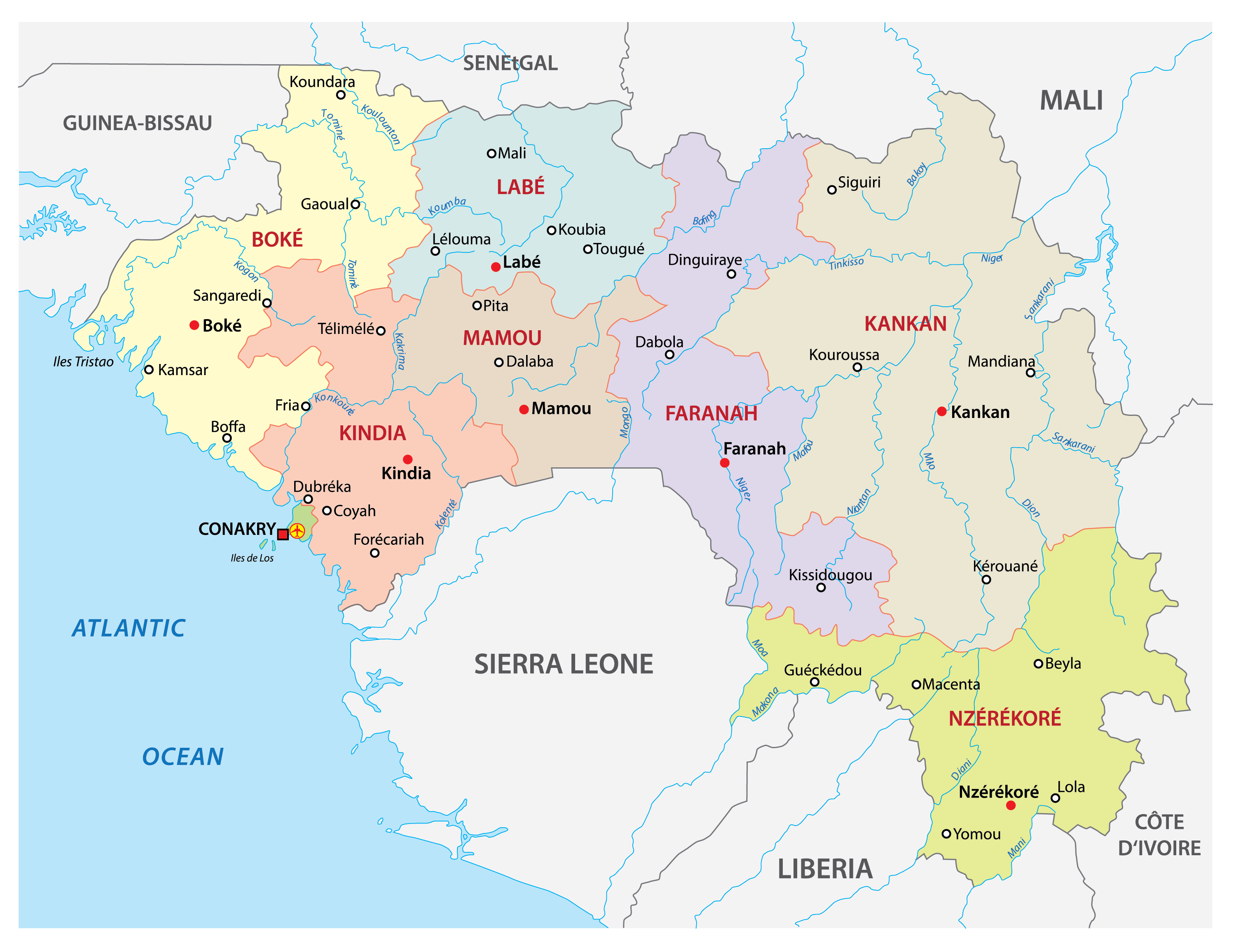 2. Bản đồ hành chính nước Guinée khổ lớn