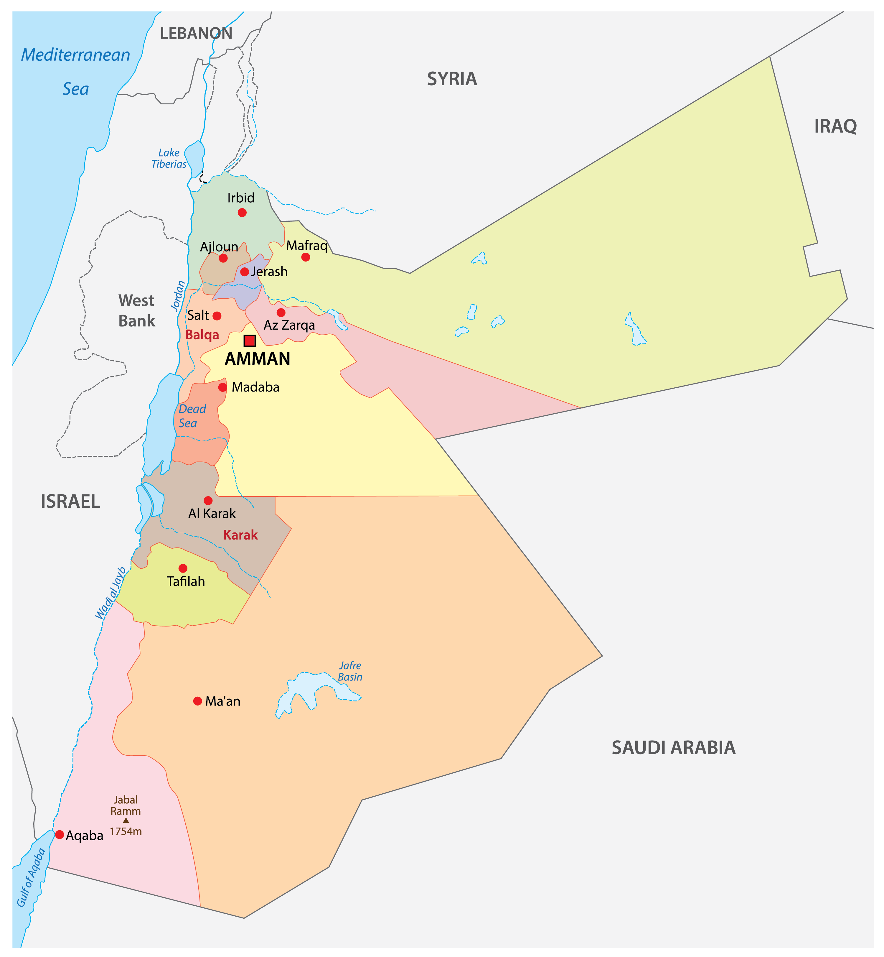 2. Bản đồ hành chính nước Jordan khổ lớn
