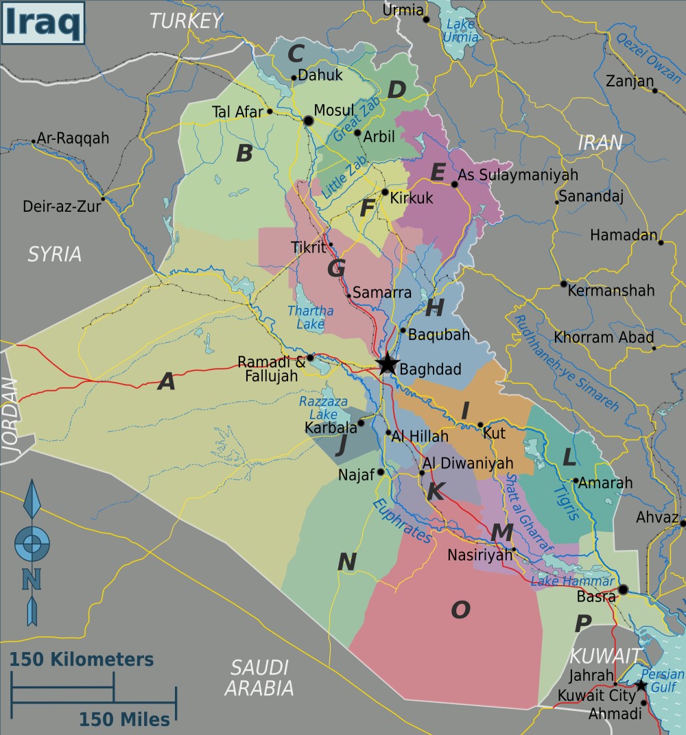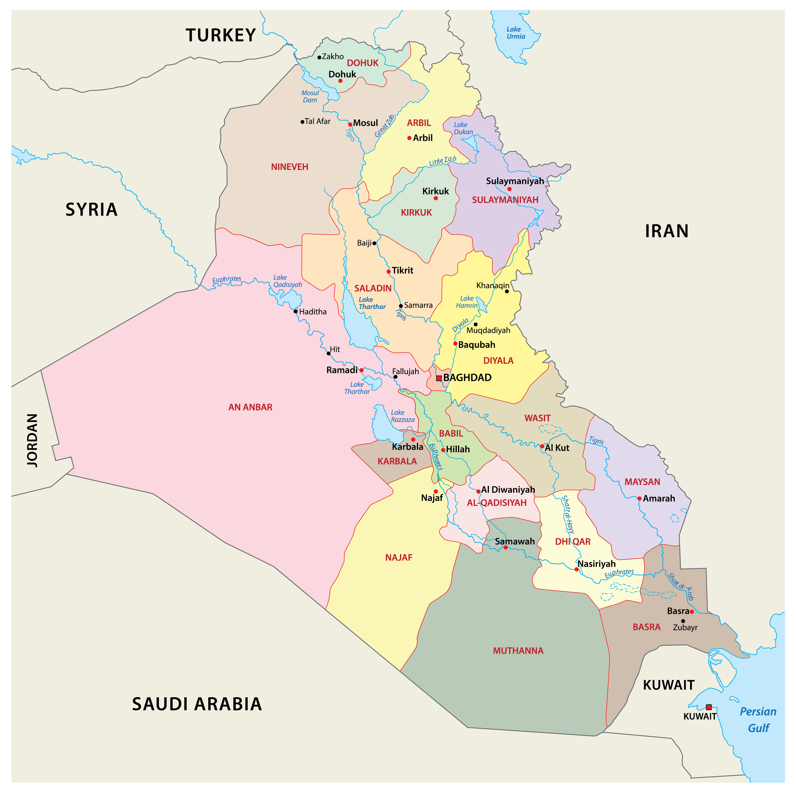2. Bản đồ hành chính nước Iraq khổ lớn