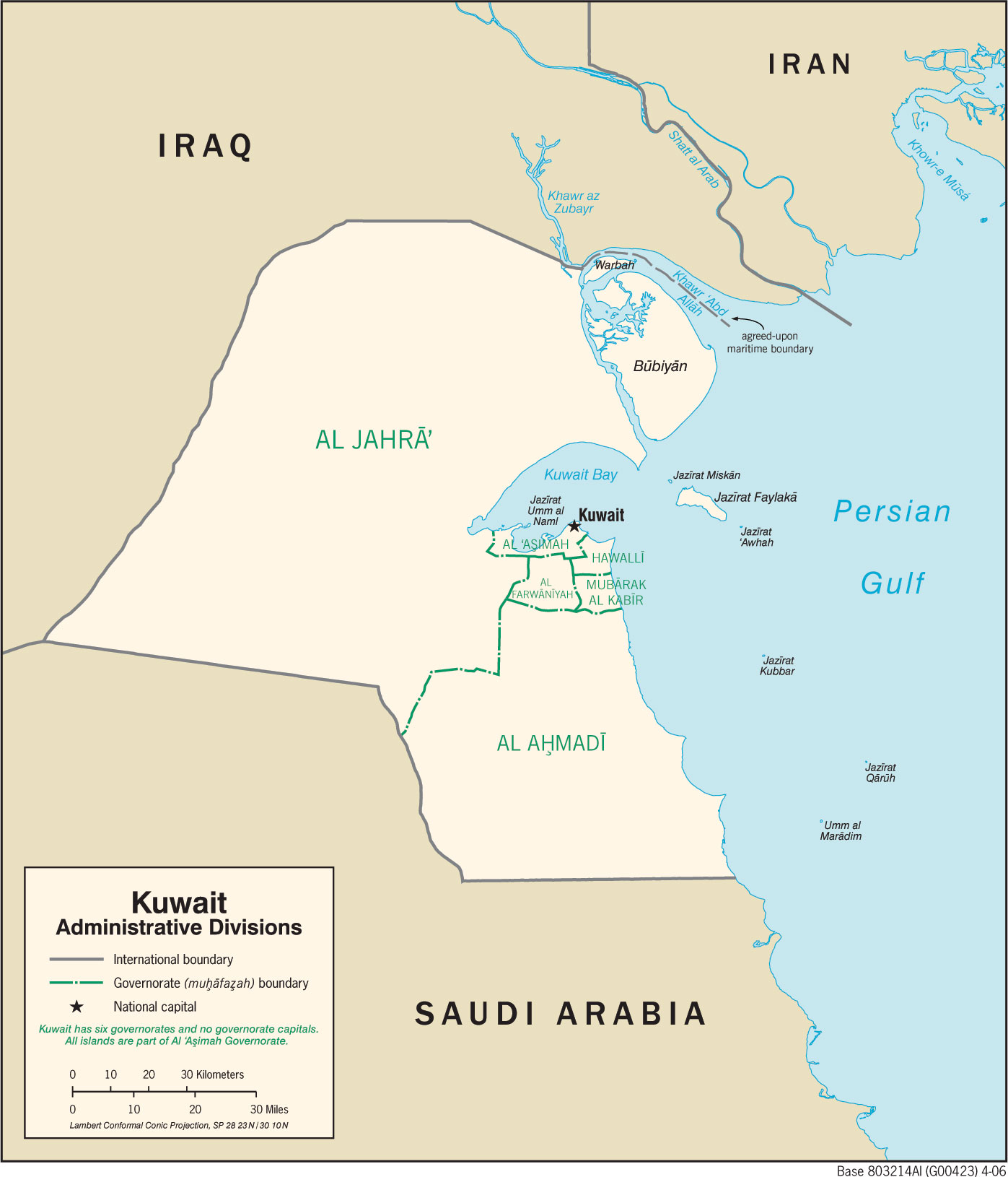 2. Bản đồ hành chính nước Kuwait khổ lớn