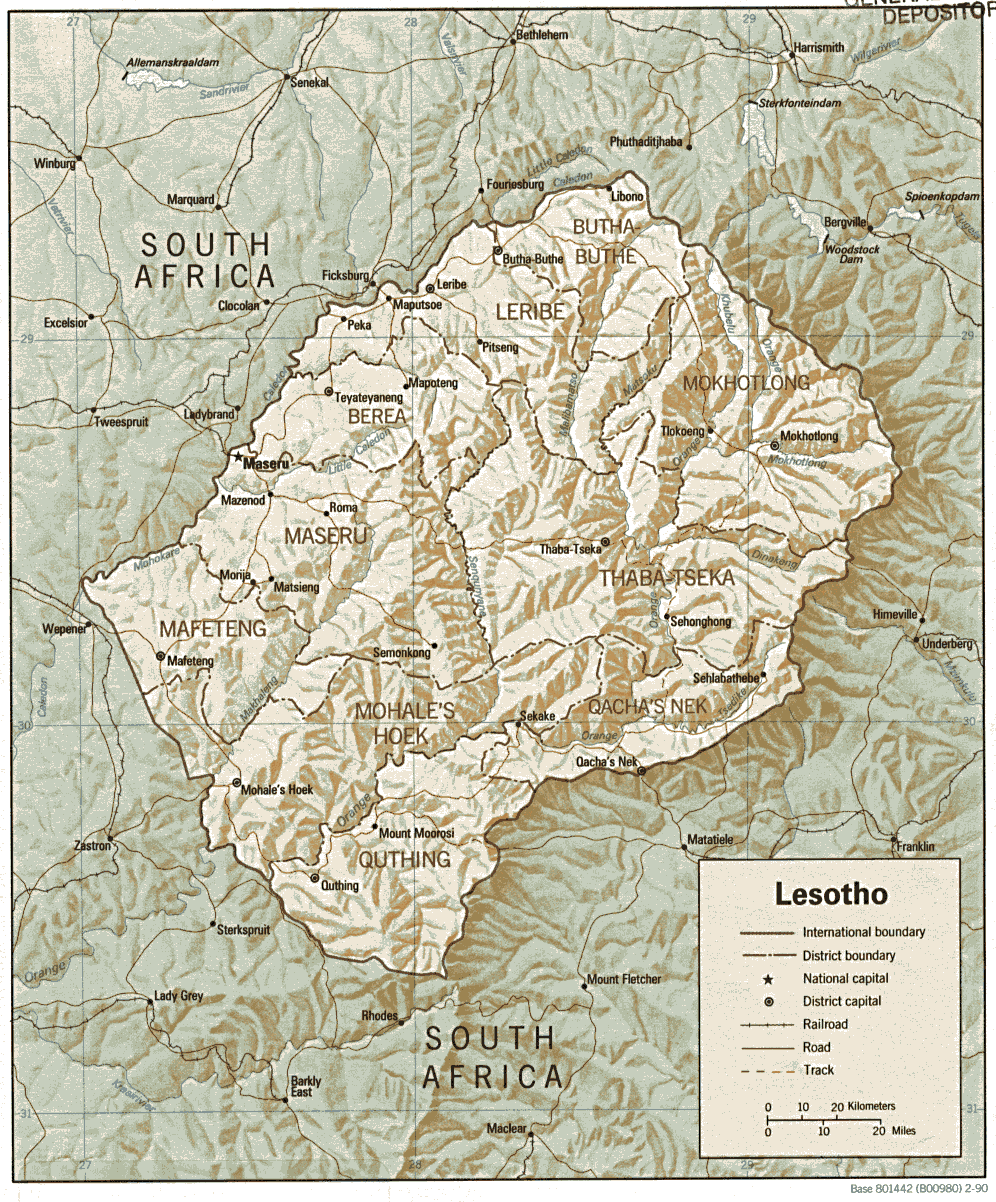 2. Bản đồ hành chính nước Lesotho khổ lớn