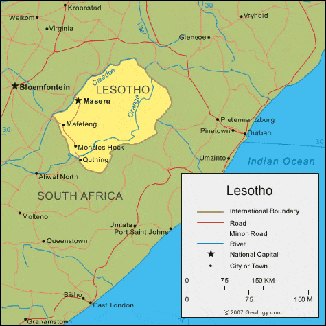 Vị trí địa lý: Ở miền Nam châu Phi, nằm giữa nước Cộng hòa Nam Phi. Tọa độ: 29030 vĩ nam, 28030 kinh đông.