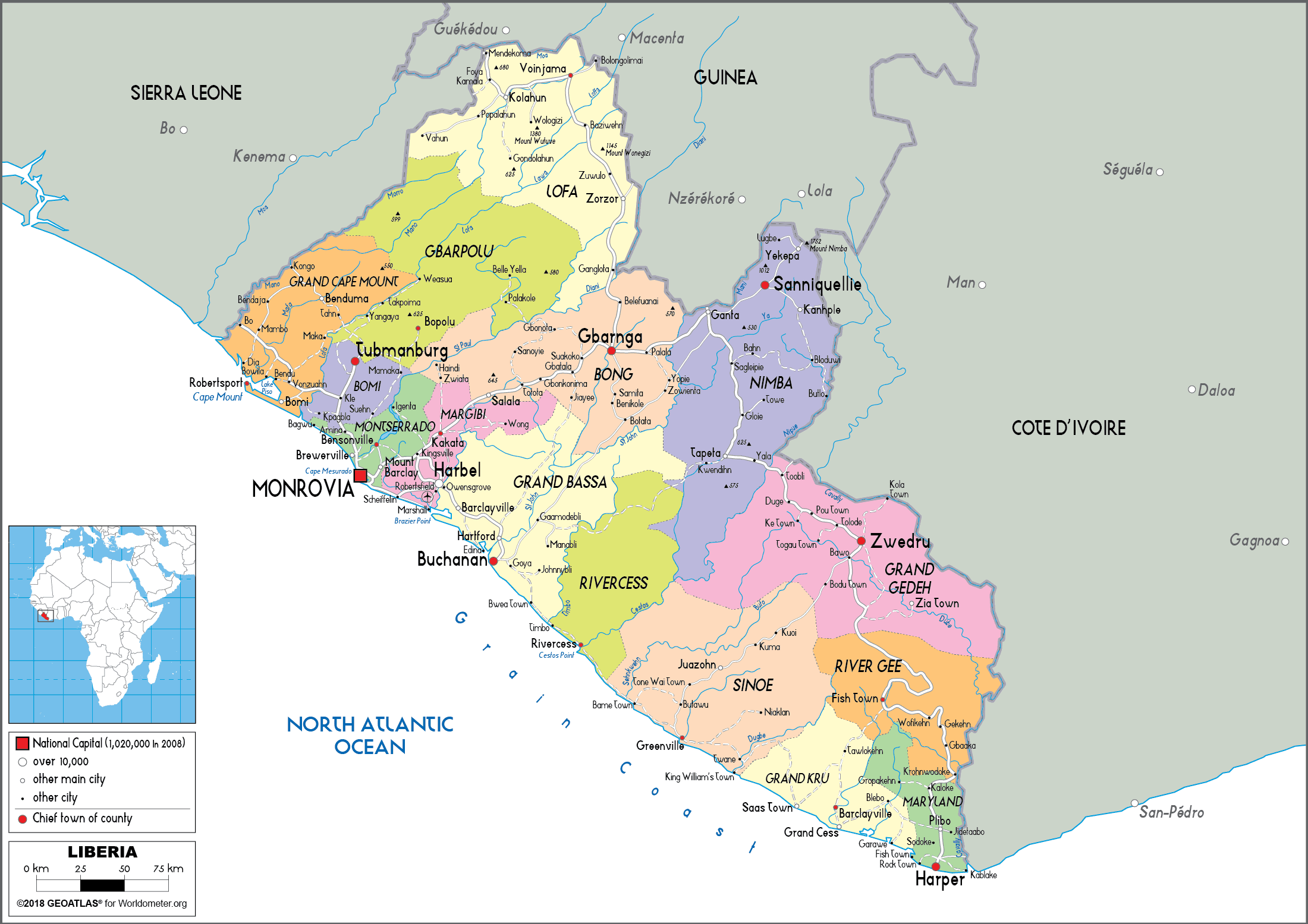 2. Bản đồ hành chính nước Liberia khổ lớn