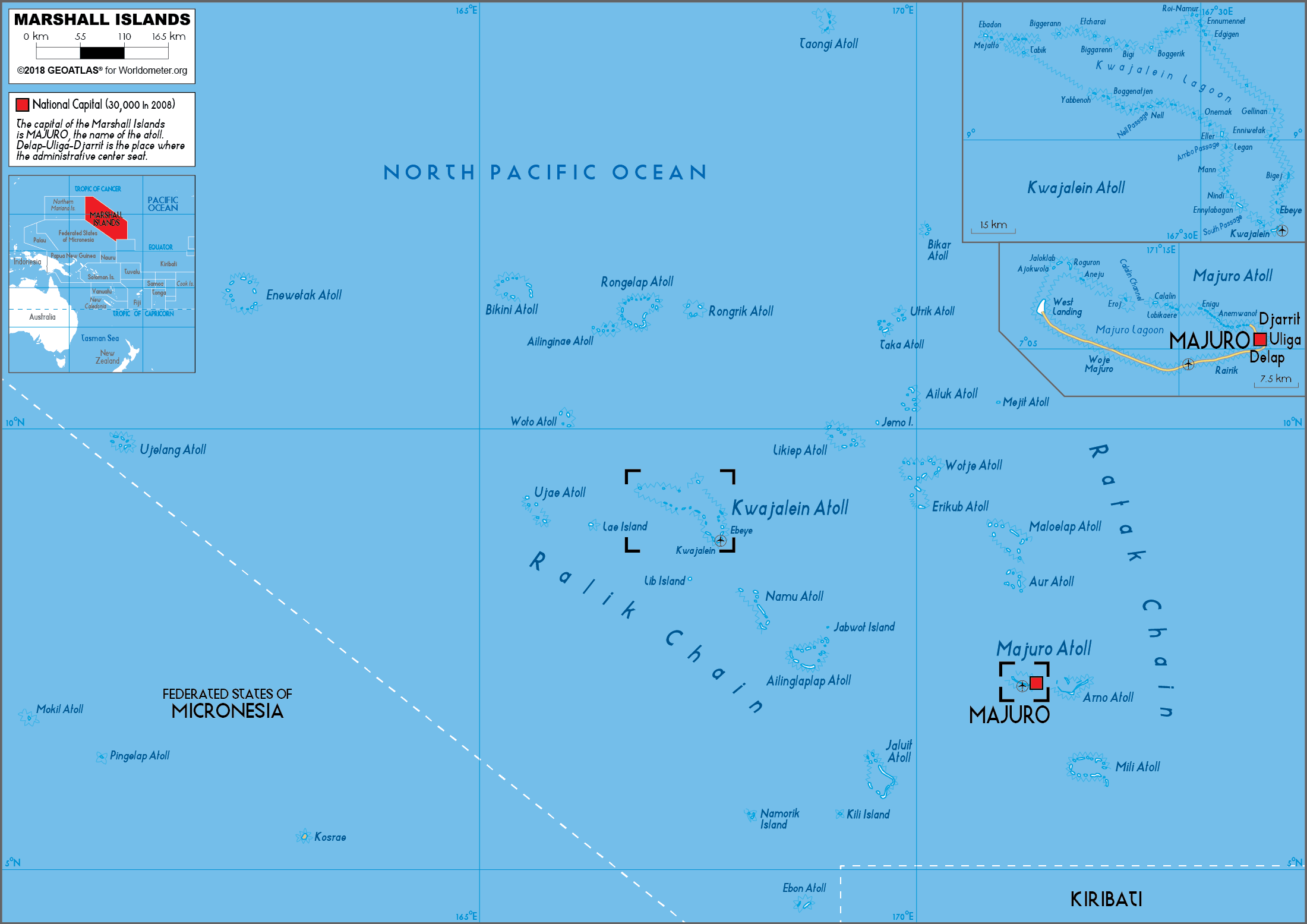 2. Bản đồ hành chính nước Marshall khổ lớn