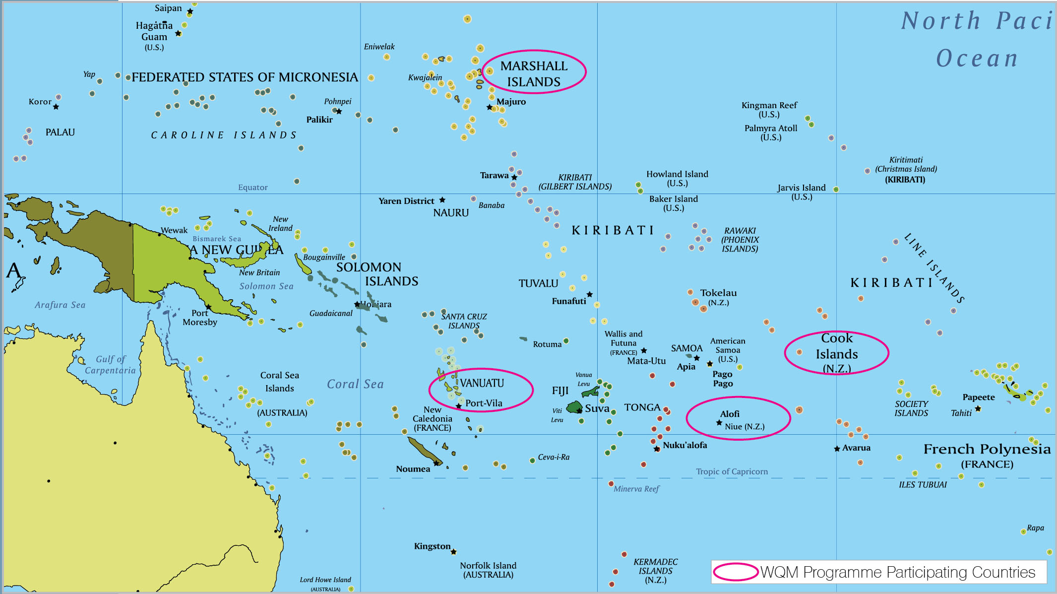 Vị trí địa lý: Ở châu Đại Dương, là một quần đảo trên đường từ Ha-oai đi Pa-pua Niu Ghi-nê. Gồm hai dãy đảo có 30 đảo san hô vòng và 1.152 đảo. Tọa độ: 9000 vĩ bắc, 168000 kinh đông.
