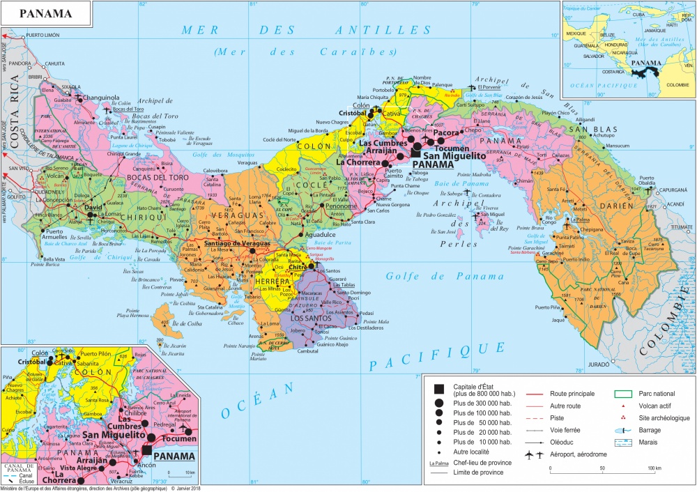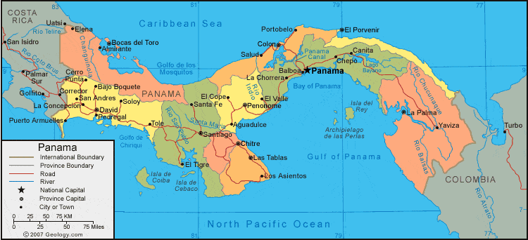 2. Bản đồ hành chính nước Panama khổ lớn