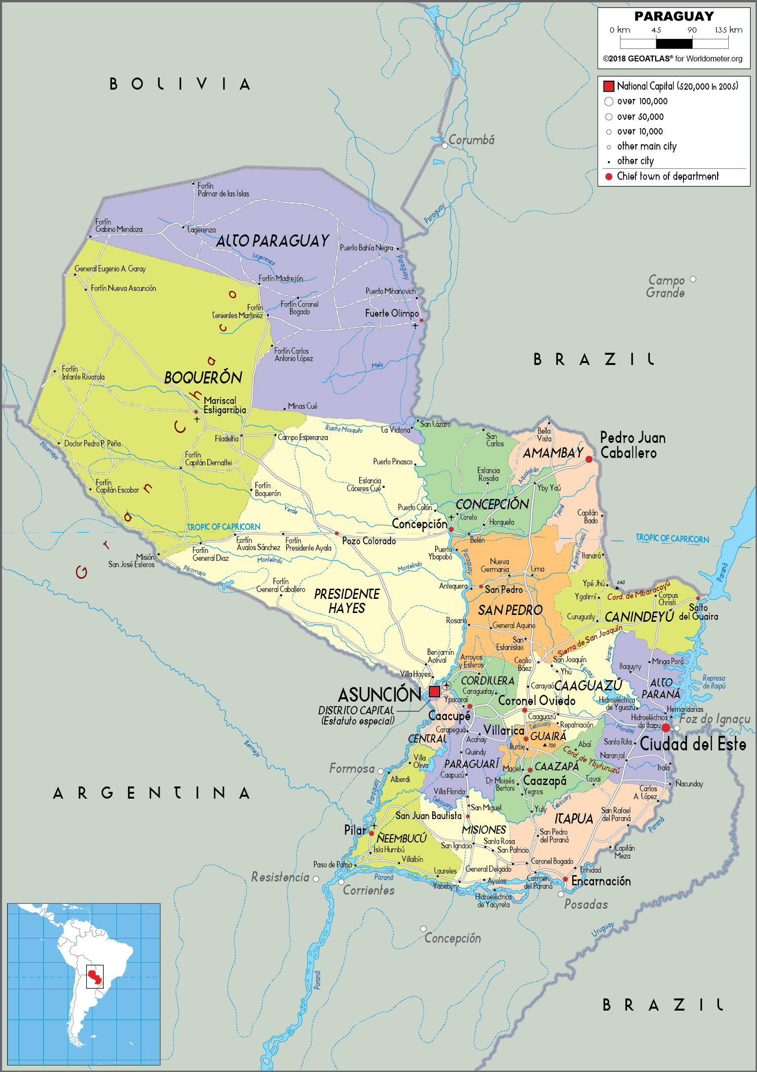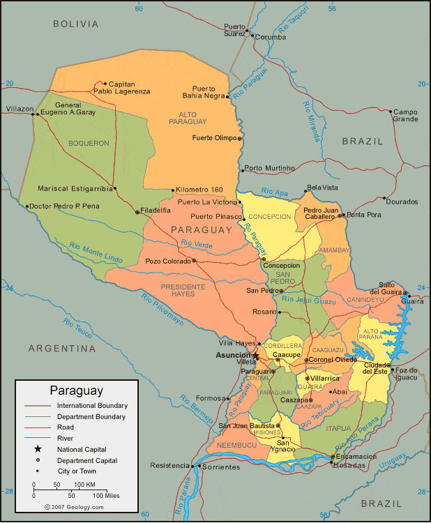 2. Bản đồ hành chính nước Paraguay khổ lớn