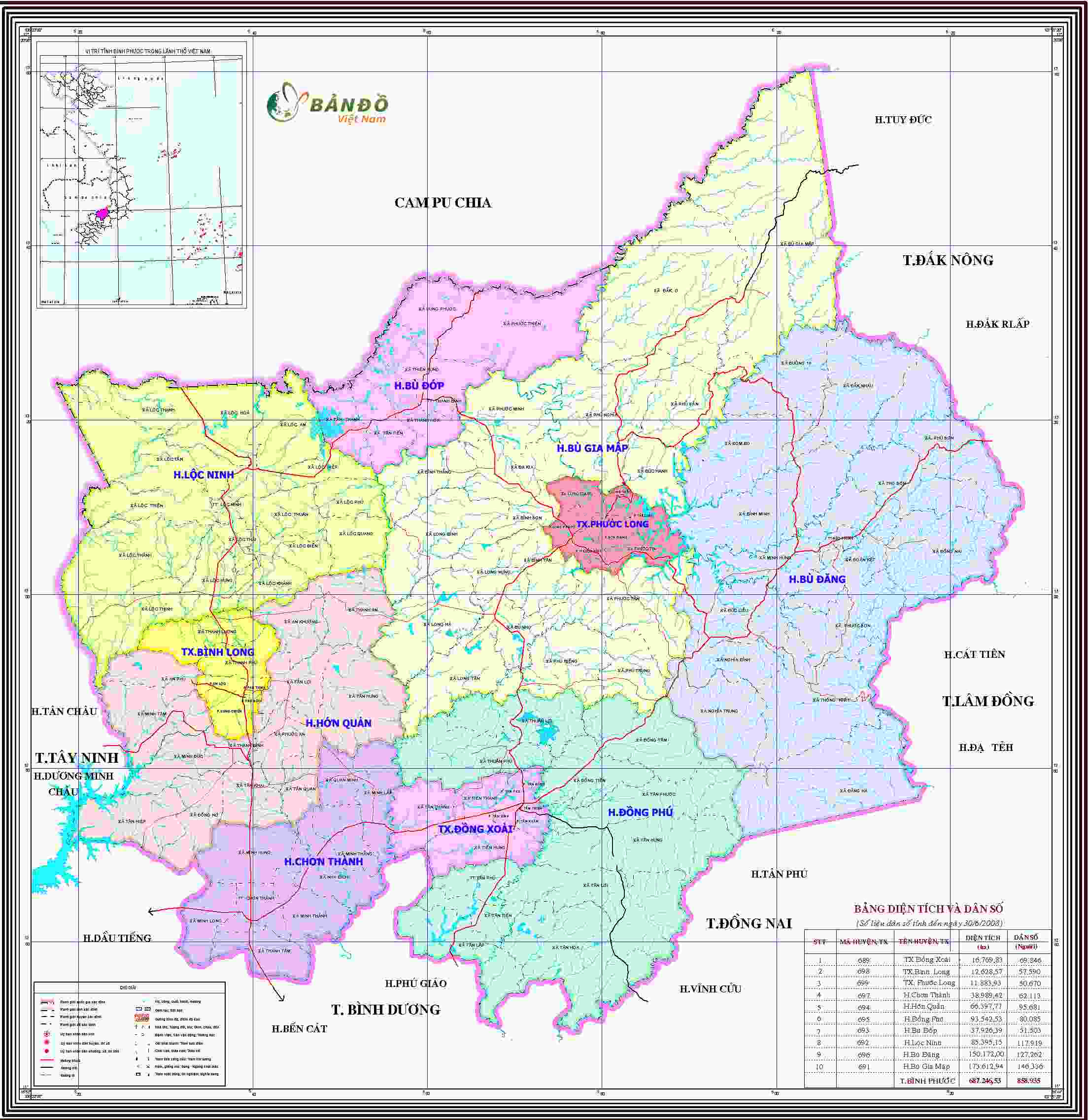 Bản đồ hành chính tỉnh Bình Phước khổ lớn