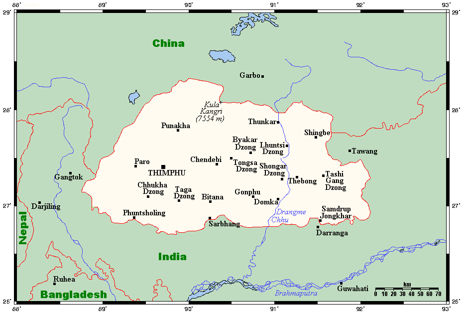 Các thành phố lớn: Jaga Dong, Punaka, Bumthang...