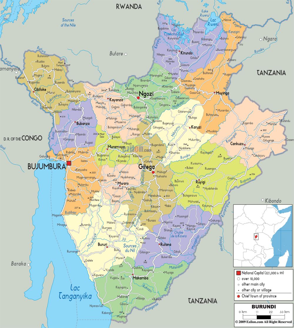Bản đồ hành chính đất nước Burundi khổ lớn