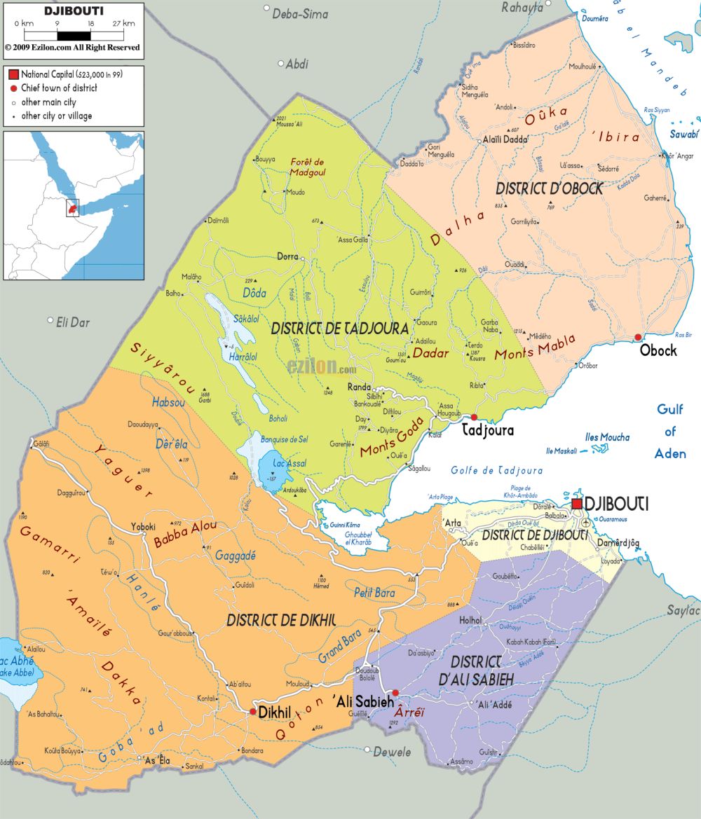 Bản đồ hành chính đất nước Djibouti khổ lớn