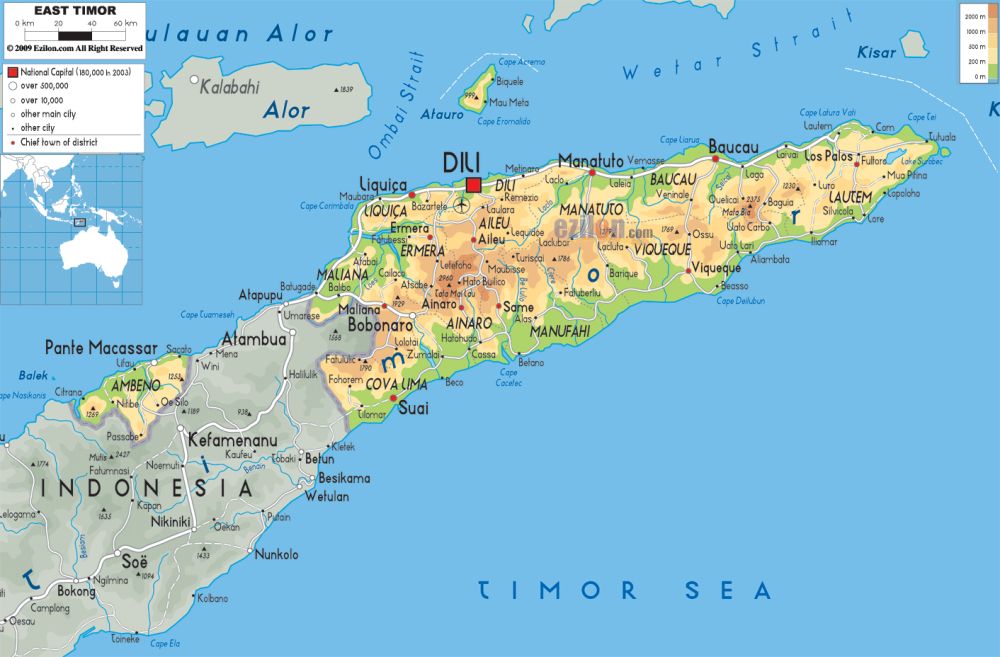 Đông Timor là một quốc gia nhỏ bé với tổng diện tích đất chỉ 15.410 km² cách thành phố Darwin, Úc khoảng 640 km về phía tây bắc.