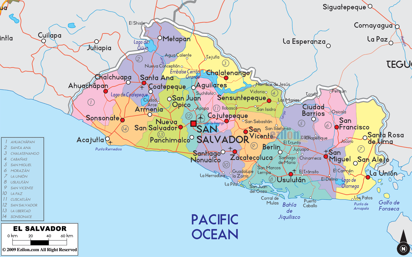 Bản đồ hành chính nước El Salvador khổ lớn
