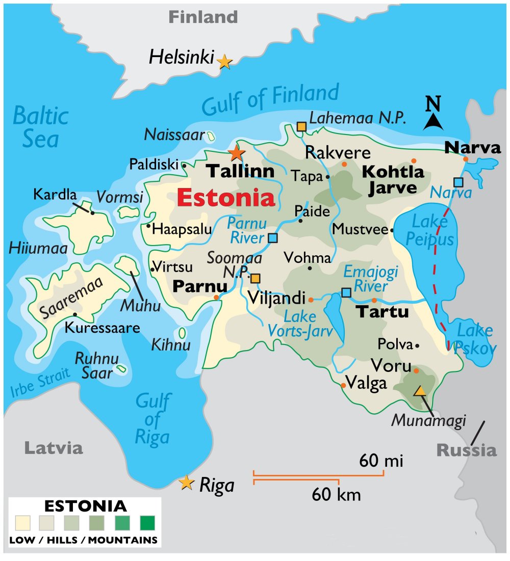 Vị trí địa lý: Nằm ở Đông Âu, giáp biển Ban-tích, vịnh Phần Lan, Nga và Lát-vi-a. Tọa độ 59o00 vĩ bắc, 26o00 kinh đông.
