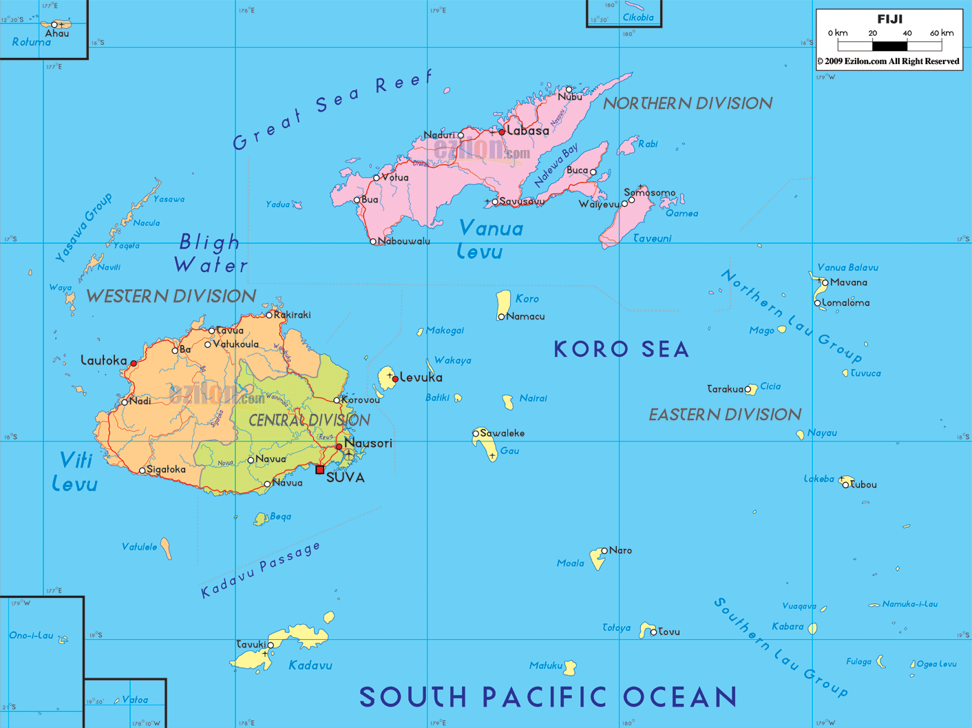 2. Bản đồ hành chính nước Fiji khổ lớn