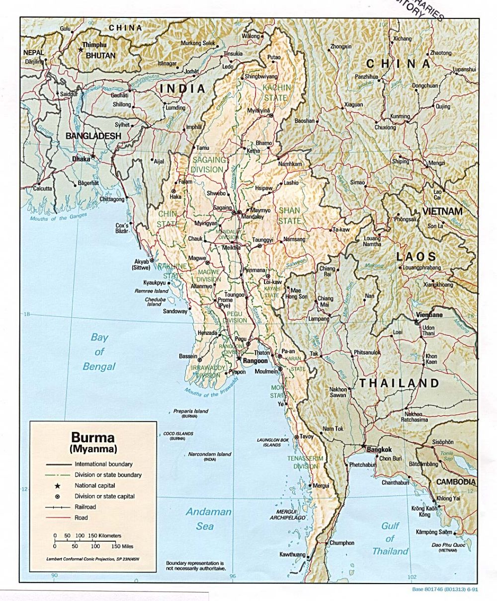 Bản đồ hành chính đất nước Myanmar khổ lớn