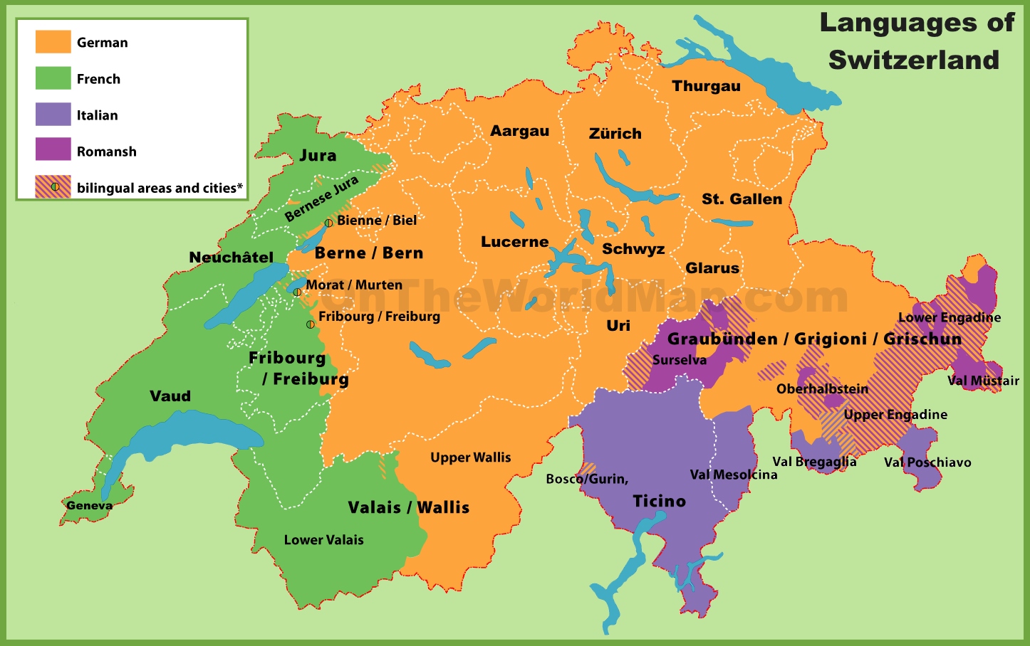 | Thành phố lớn | Basel, Genève (Genf, Genève, Geneva), Luzern, Lausanne, Lugano, Zürich. |