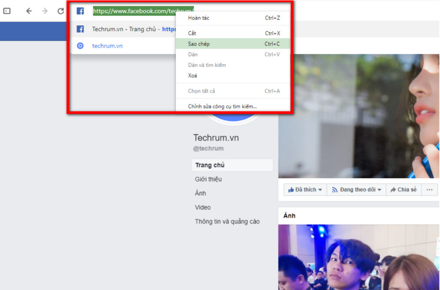 Bước 1: Đầu tiên, bạn vào trang cá nhân hoặc Fanpage -> Tiến hành copy link