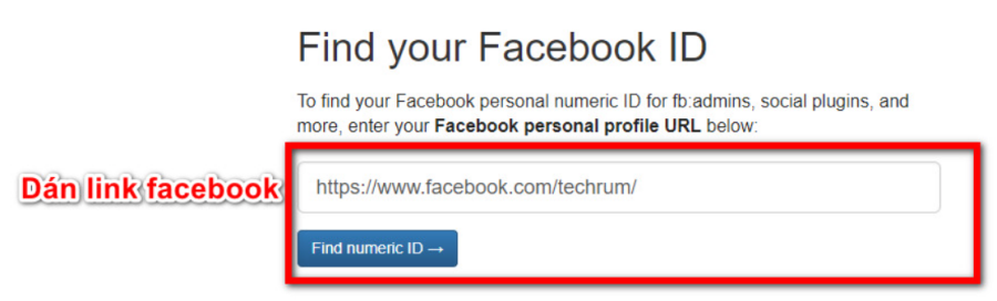 Bước 2: Sau đó, bạn truy cập vào trang web findmyfbid để lấy ID -> Dán link vừa copy -> Bấm chọn Find numerich ID