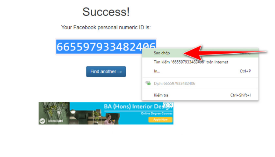 Bước 3: Tiếp theo, tại trang web sẽ hiện ra iD -> Nhấn copy iD này.