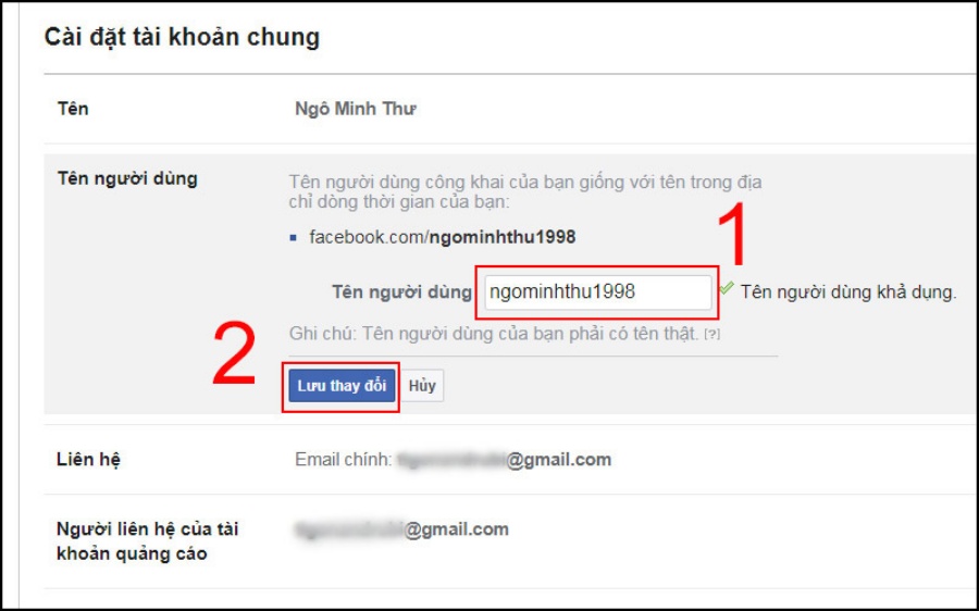 Bước 3: Tiếp theo, bạn tiến hành nhập thông tin vào ô Tên người dùng -> Bấm Lưu thay đổi để áp dụng.
