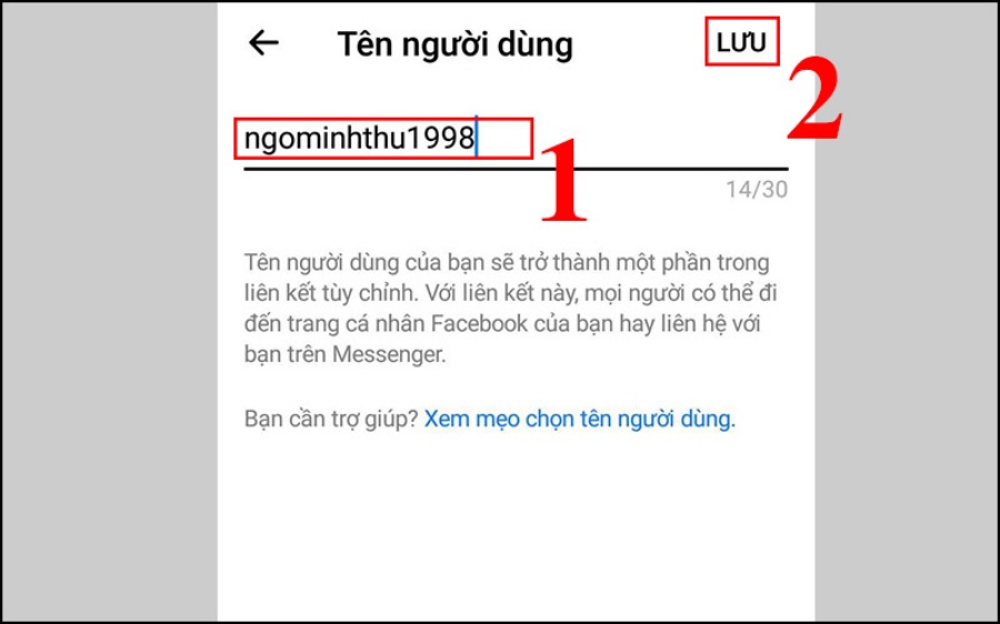 Bước 3: Tiếp theo, bạn nhập tên người dùng -> Chọn Lưu là xong.