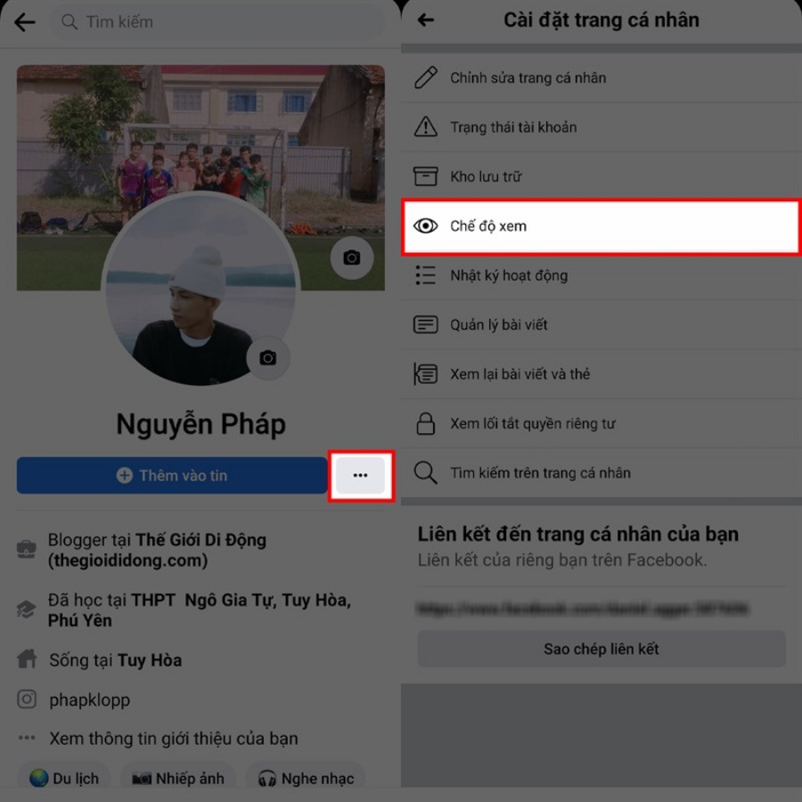 Bước 6: Cuối cùng, bạn kiếm tra lại bằng cách chọn vào dấu 3 chấm ngang ở phía sau ô Thêm vào tin -> Nhấn chọn Chế độ xem để kiểm tra nhé.