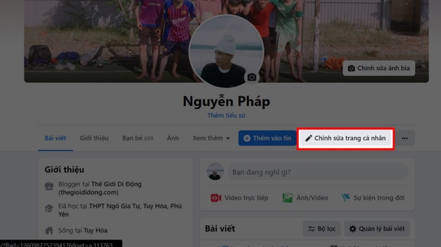 Bước 1: Đầu tiên, bạn truy cập trang cá nhân của mình -> Nhấn chọn mục Chỉnh sử trang cá nhân.