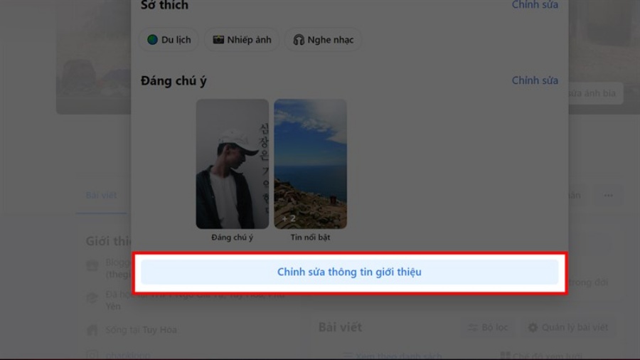Bước 2: Tiếp theo, bạn kéo xuống dưới bảng thông báo -> Ấn chọn vào mục Chỉnh sửa thông tin giới thiệu.