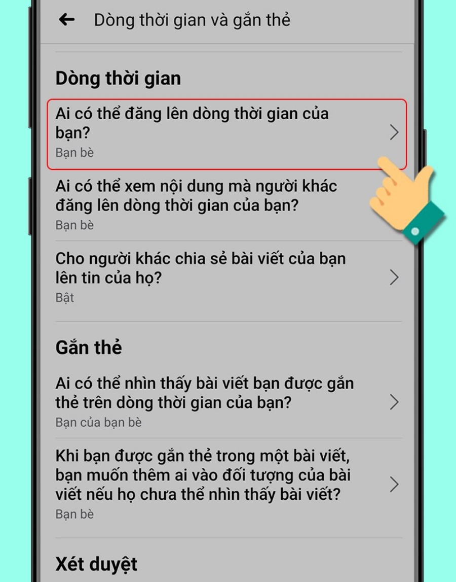 Bước 4: Kế đến, bạn bấm vào Ai có thể đăng lên dòng thời gian của bạn?.