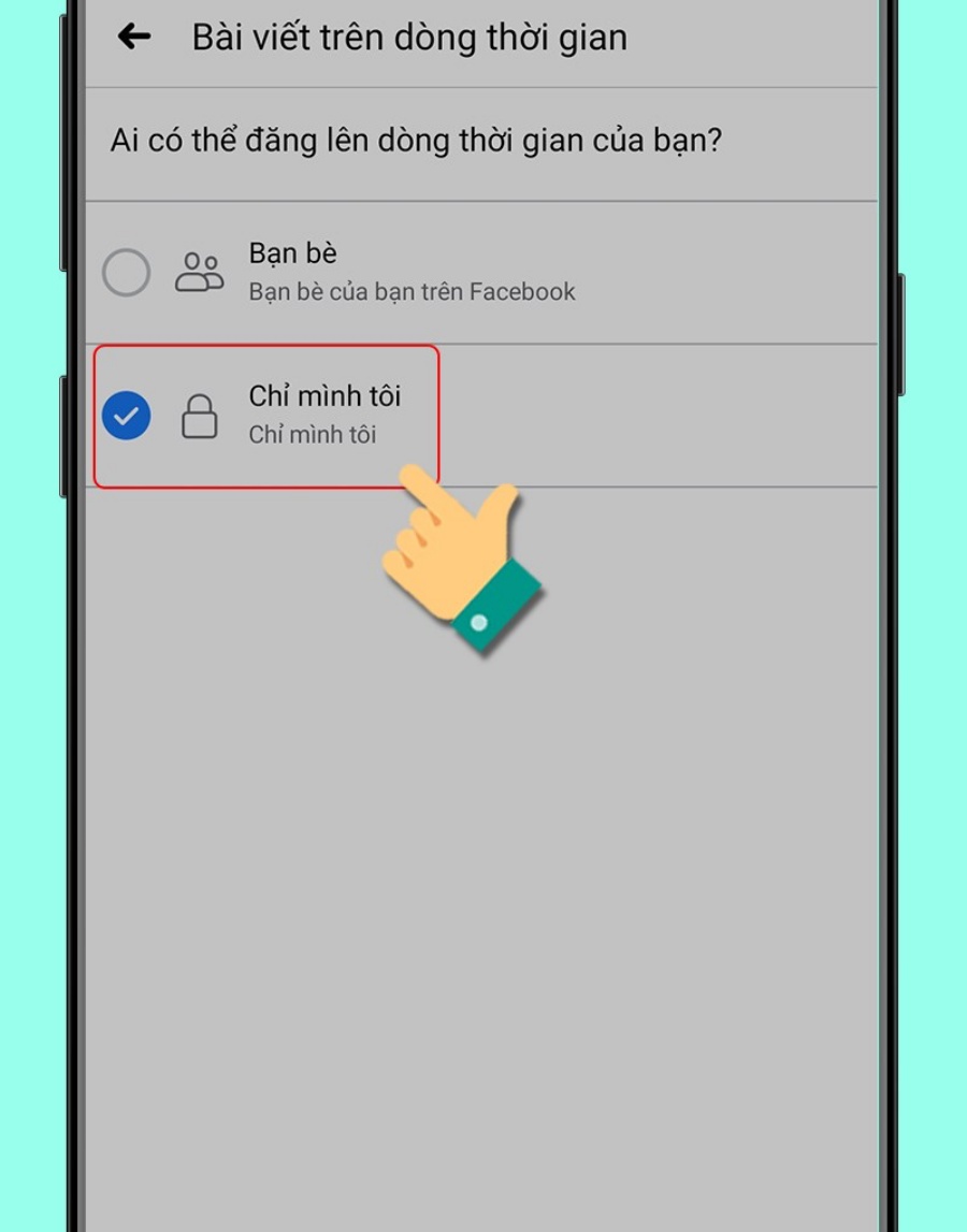 Bước 3: Kế đó, bạn chuyển chế độ từ Bạn bè sang chế độ Chỉ mình tôi (Only Me) là hoàn tất.