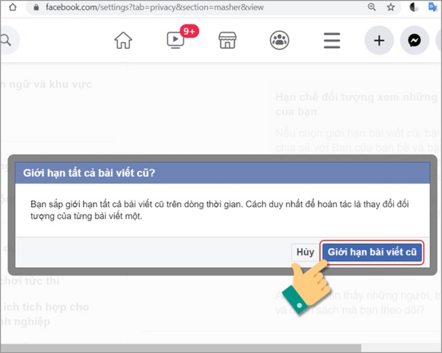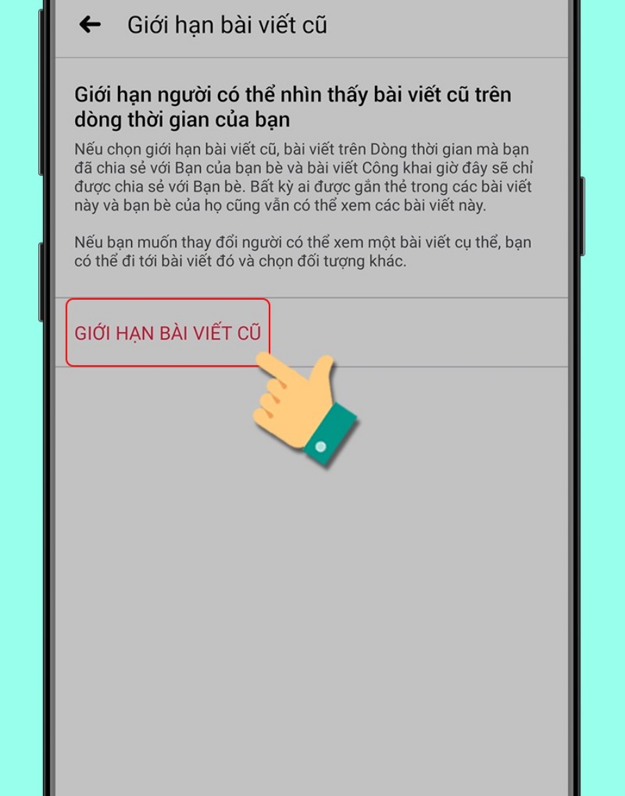 Bước 6: Cuối cùng, ở màn hình thông báo đồng ý giới hạn -> Nhấn chọn Giới hạn bài viết cũ là xong.