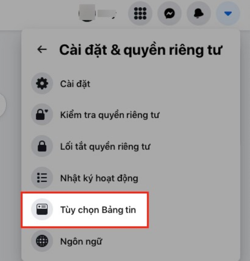 Bước 2: Tiếp theo, bạn chọn Tùy chọn Bảng tin.