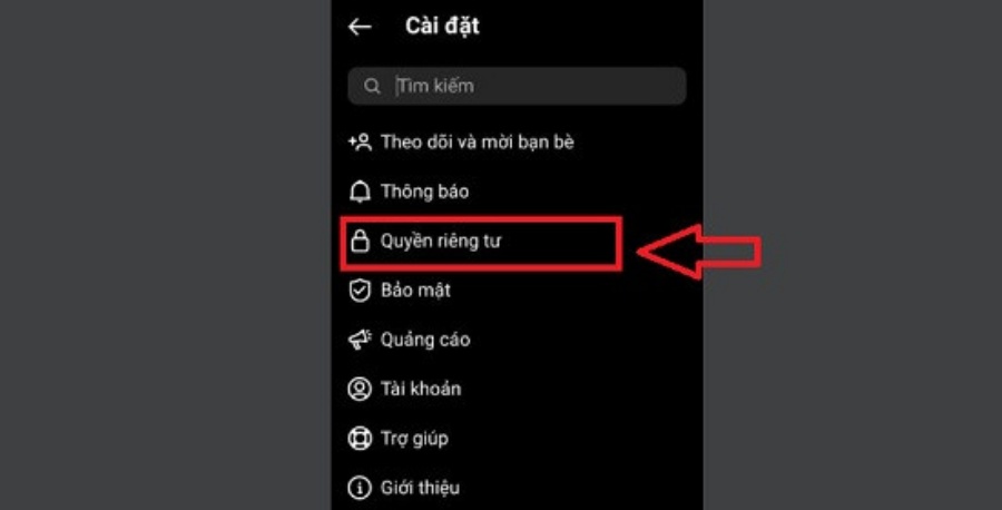 Bước 3: Sau đó, bạn click vào “Quyền riêng tư”.