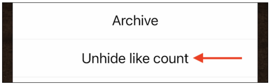 Bước 5: Để hiển thị lại số lượt thích cho bài đăng, bạn bấm vào biểu tượng menu ba chấm ở góc trên cùng bên phải và chọn tùy chọn “Unhide Like Count” (Bỏ ẩn số lượt thích) là hoàn tất.