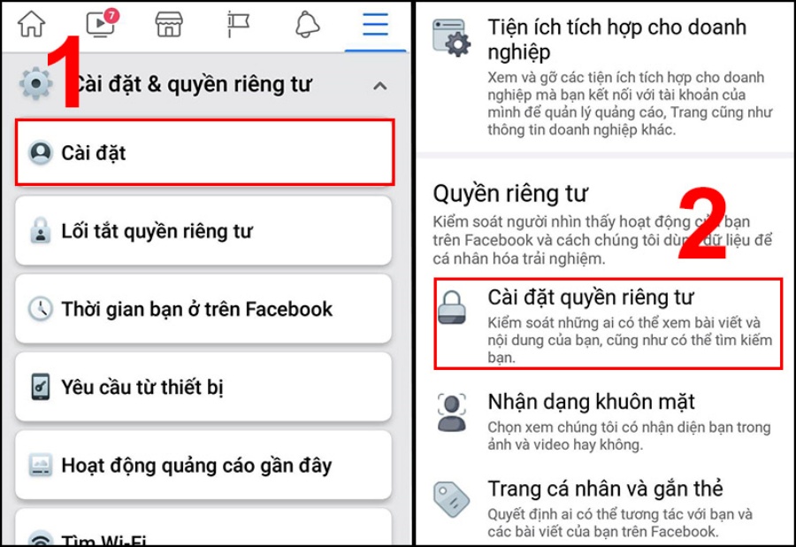 Bước 1: Trước tiên, bạn ấn vào biểu tượng 3 gạch -> Nhấn chọn Cài đặt -> Click vào Cài đặt & quyền riêng tư.