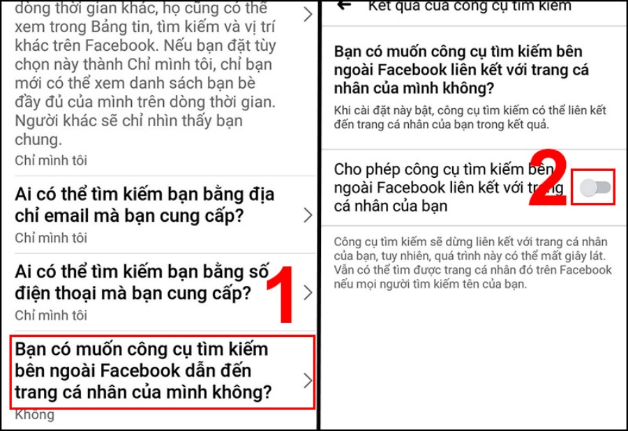 Cuối cùng, bạn chọn mục Ai có thể tìm kiếm bạn bằng địa chỉ email mà bạn cung cấp -> Bấm vào Gạt nút qua bên trái như hình.